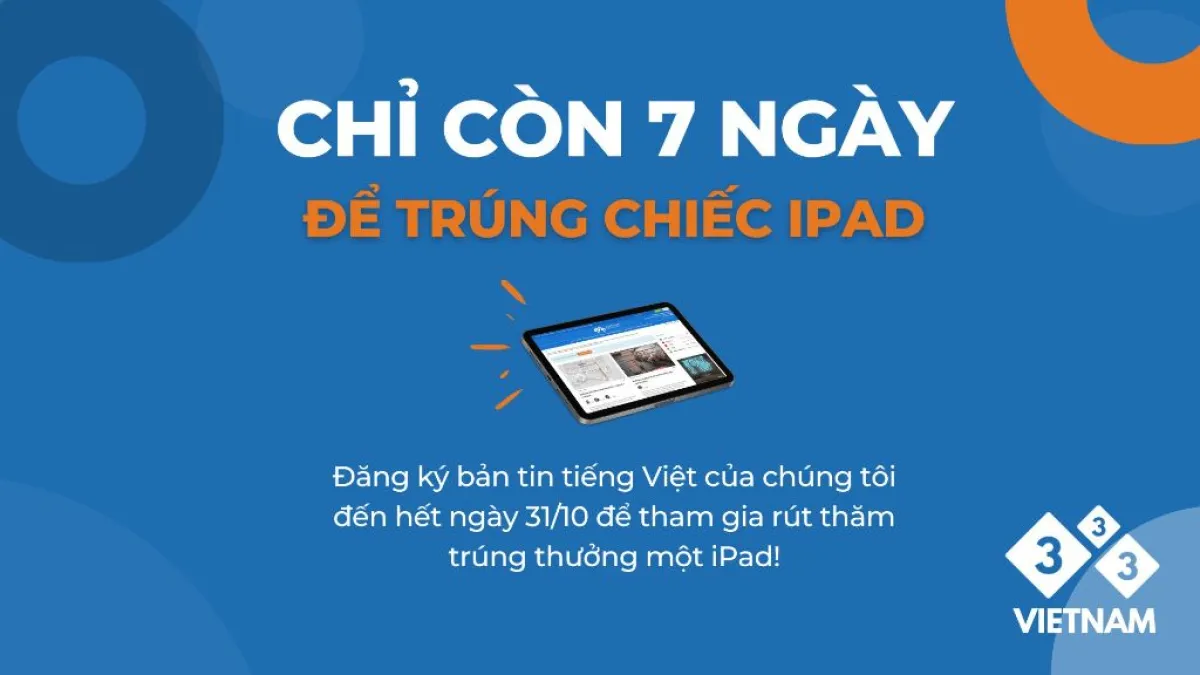 Các bạn đừng bỏ lỡ cơ hội tham gia rút thăm trúng thưởng chiếc iPad bằng cách đăng ký bản tin tiếng Việt miễn phí của