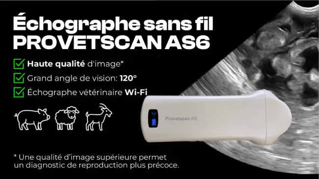 Échographe sans fil PROVETSCAN AS6Échographe vétérinaire Wi-Fi avec une qualité d’image haute définition, conçu pour le diagnostic chez les porcins, ovins et caprins.