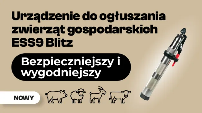ESS9 Blitz Urządzenie do ogłuszania zwierząt gospodarskich dla świń, owiec, kóz i cieląt TurbocutOgłuszacz Turbocut ESS9 to nowy standard w ogłuszaniu zwierząt gospodarskich. Bezpieczniejszy i wygodniejszy. Odpowiedni dla świń, owiec, kóz i cieląt.