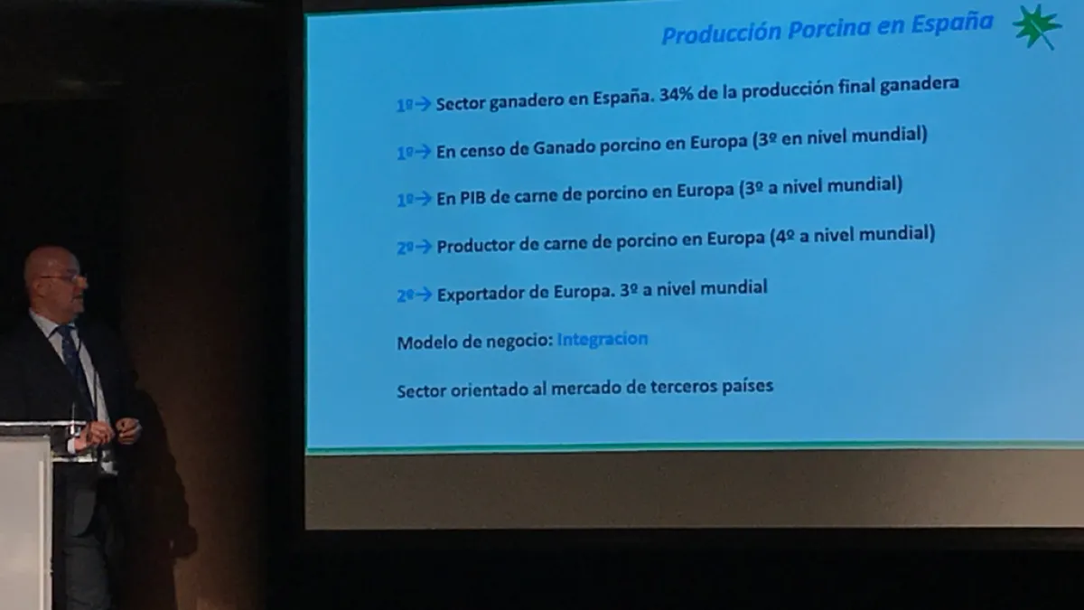 Las macromagnitudes del sector porcino español que le han llevado a ser un referente en la industria porcina global y un modelo a replicar. Análisis del director de Anprogapor -Miguel Ángel Higuera-, durante la jornada técnica de Adiprem celebrada en Barcelona con motivo de la conmemoración de su 20° aniversario.