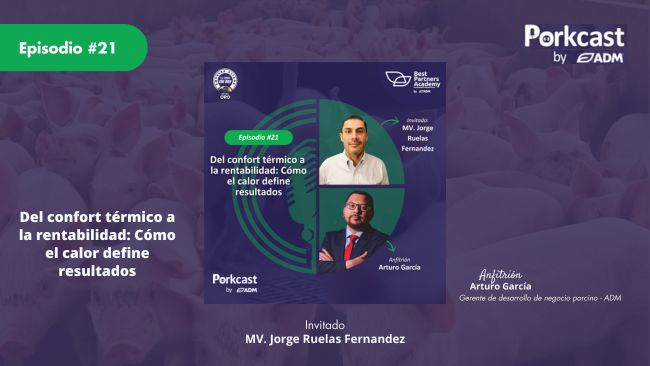 Nuevo Porkcast by ADM: Arturo García y el MV. Jorge Ruelas analizan el impacto del estrés térmico en la productividad porcina.