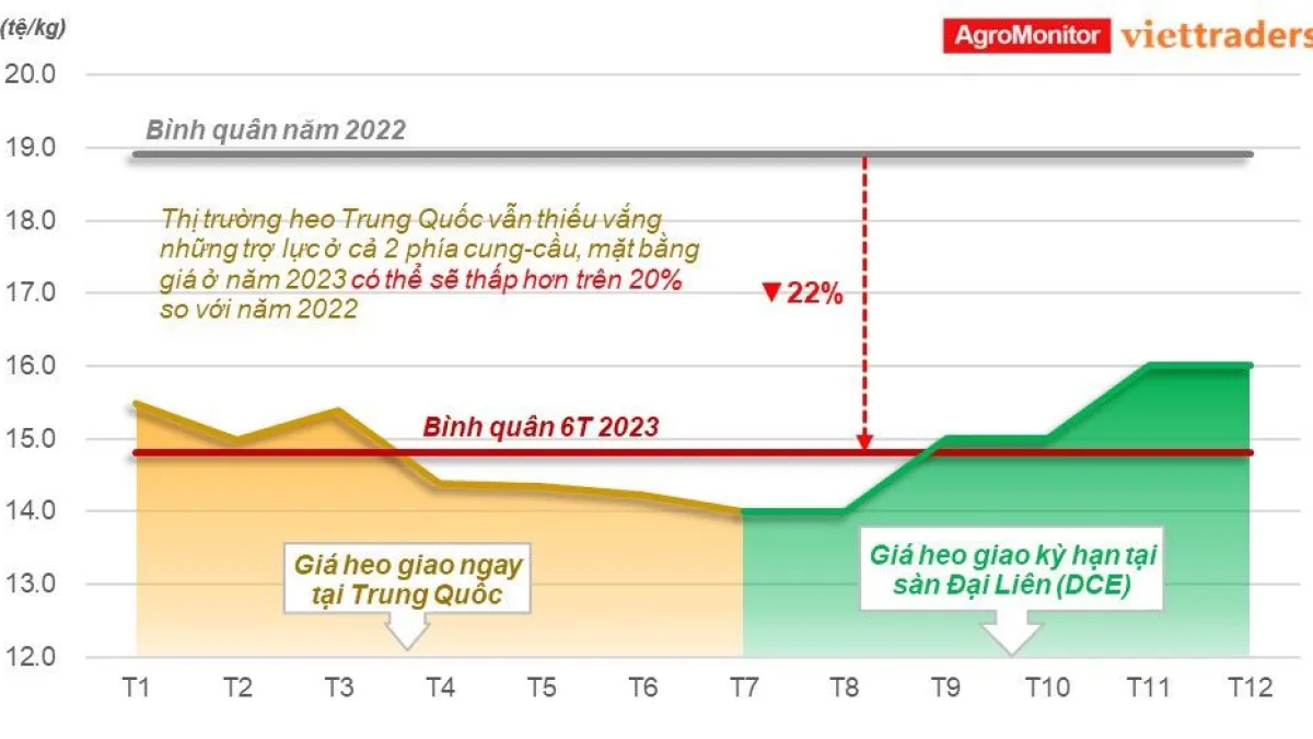Suốt kể từ đầu năm nay, chịu áp lực từ cả 2 phía cung-cầu, mặt bằng giá heo hơi Trung Quốc gần như không có sự cải thiện nào đáng kể khiến người chăn nuôi liên tục gặp thua lỗ. Mặc dù các đợt lễ hội lớn trong năm lần lượt diễn ra nhưng do sự gia tăng nguồn cung heo trên thị trường – là kết quả của việc đàn nái tăng cao kỷ lục vào nửa nuối năm 2022, cùng việc dịch bệnh lai rai nổ và nắng nóng khiến sức tiêu thụ yếu, giá heo Trung Quốc trong nửa đầu năm nay đã giảm tới hơn 20% so với bình quân cả năm 2022. Tại sàn Đại Liên, giá heo giao kỳ hạn ở những tháng cuối năm mặc dù cao hơn so với giá giao ngay ghi nhận vào tháng 7, nhưng biên độ tăng rất hạn chế khiến thị trường vẫn tỏ ra không mấy lạc quan về sự phục hồi của mặt bằng giá.