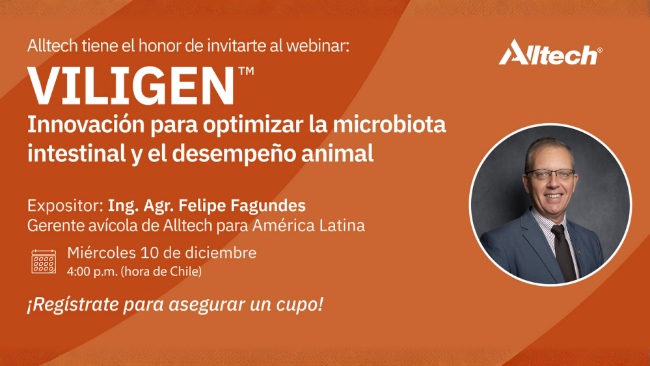Alltech presenta un webinar sobre Viligen™, tecnología para equilibrar la microbiota intestinal y mejorar el desempeño de aves y cerdos, con evidencia reciente.