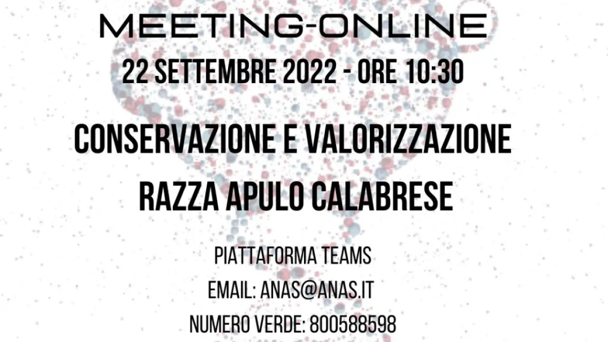 MEETING ON-LINE22 settembre 2022 - ore 10:30 Conservazione e Valorizzazione Razza Apulo Calabrese
