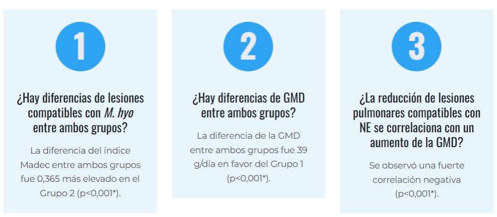 Numerosos estudios demuestran que la vacunación de cerdos frente a M. hyo es eficaz en la reducción de las lesiones pulmonares observadas en matadero y que repercute en un beneficio económico debido a la mejora en los índices de crecimiento.
