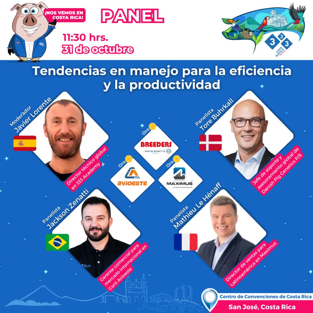 Este panel abordará las últimas prácticas y estrategias de manejo que impulsan la eficiencia y productividad en la producción porcina. Los expertos discutirán nuevas tecnologías, técnicas de manejo animal, mejoras en la alimentación, bioseguridad, bienestar animal, así como herramientas de monitoreo y automatización.
