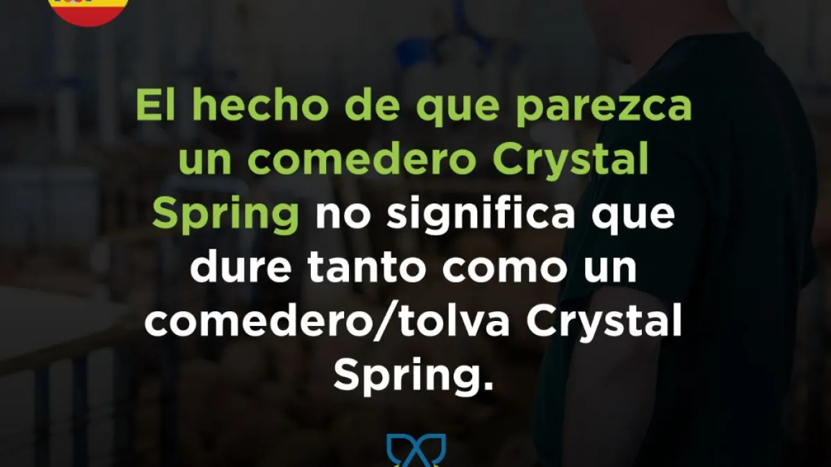 La fabricación, la ingeniería y el diseño de precisión de Crystal Spring garantizan que todos nuestros comederos sean de la más alta calidad y los más duraderos en el mundo. No encontrará un comedero copia en una granja/galpón/nave después de 15 años de uso, aún ofreciendo el mismo rendimiento. ¡Solo un comedero Crystal Spring original estará allí de pie!