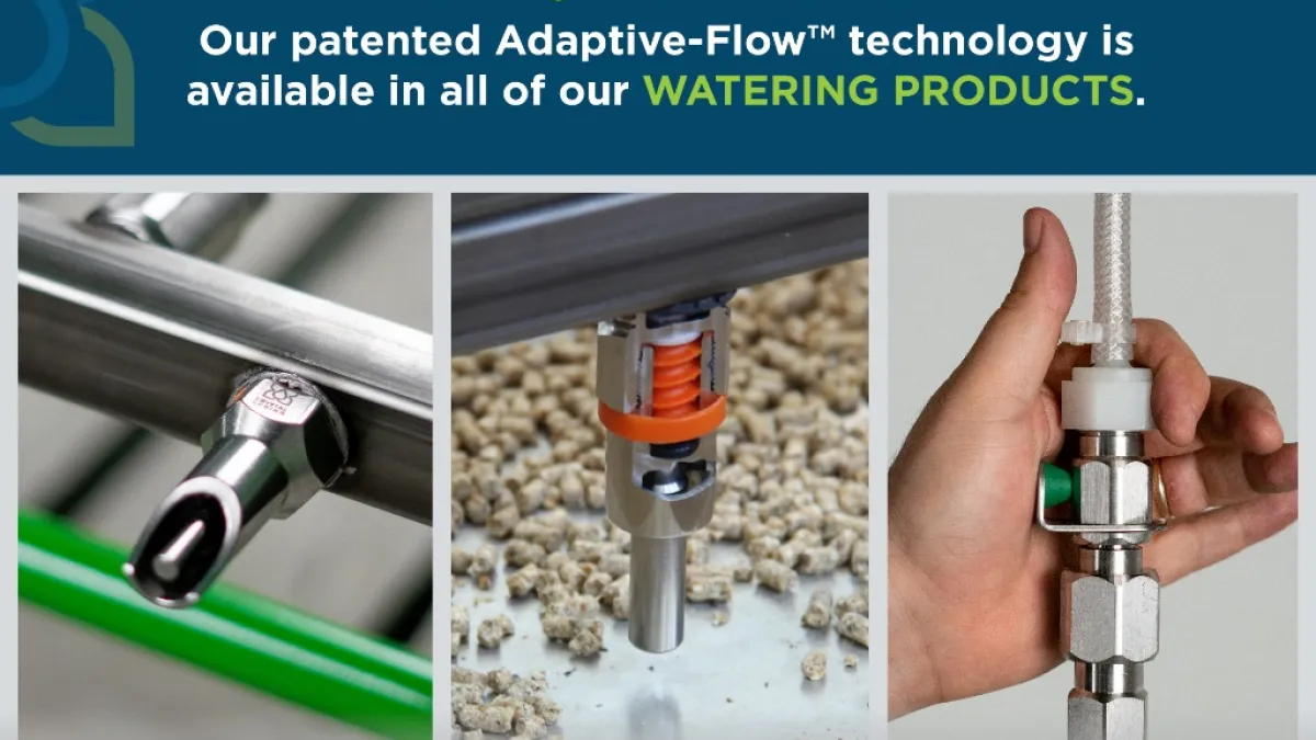Our line of watering products include: Movable Water Bar Kits, Water Pipes, Dinker Nipples, Bite Nipples, as well as our Inline Regulator and Quick Connect Valve. All of our watering products come with our patended Adaptive-Flow
