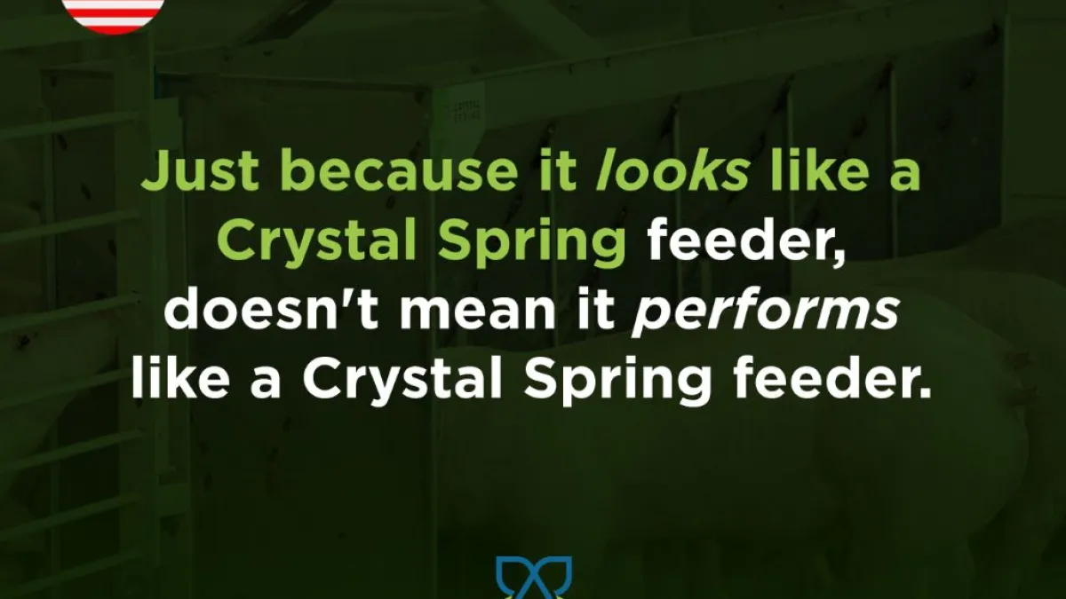 There are many copies of Crystal Spring feeders on the market, but none of them deliver the proven production improvements of our original wet/dry feeder. Our innovative feeder technology provides the best performance in average daily gain, feed conversion, and water savings with the simplest feeder management.