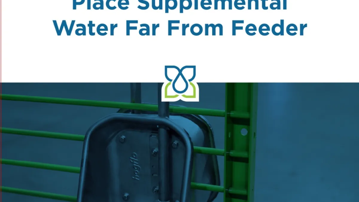 Always place supplemental water sources on the opposite side of your wet/dry feeders. This will allow your pen's “dirty” area to be farther from the feeder and will allow pigs to only look for supplemental water for an extra drink or to cool down on hot days, allowing the feeder nipples to be the primary source of water for your pigs. Because remember… when pigs drink – they eat!