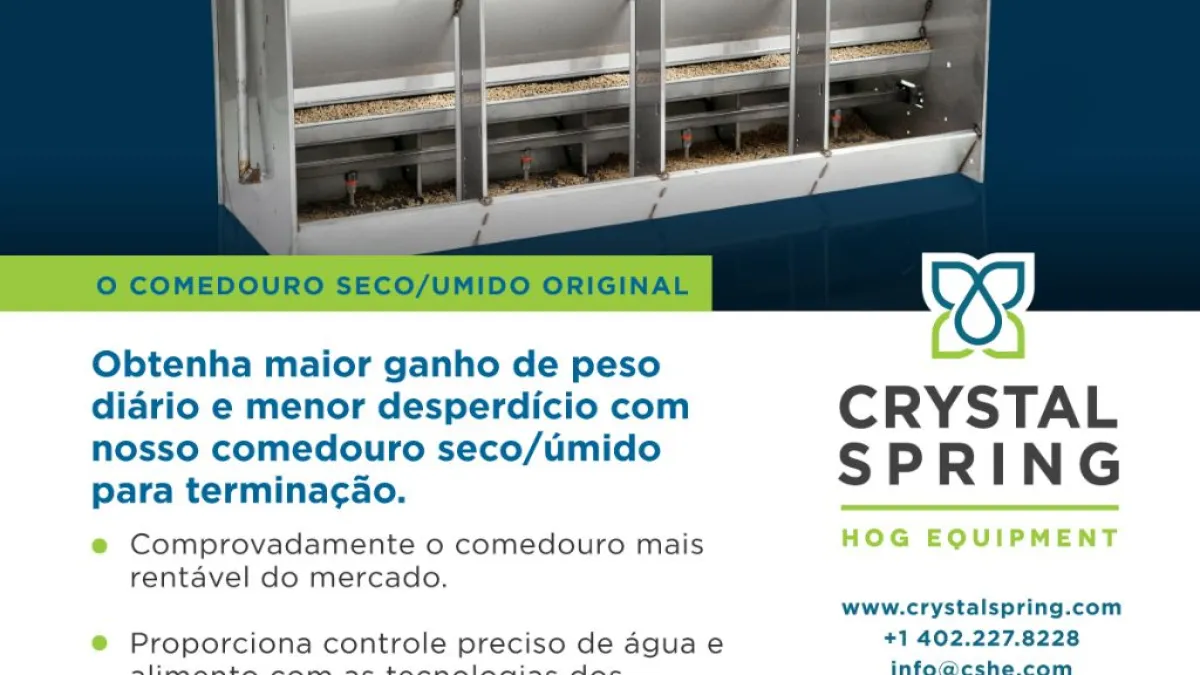 Não se deixe enganar por cópias ineficazes e de baixa qualidade! O comedouro seco/úmido original para terminação da Crystal Spring melhora o desempenho, aumenta a lucratividade e oferece durabilidade comprovada.