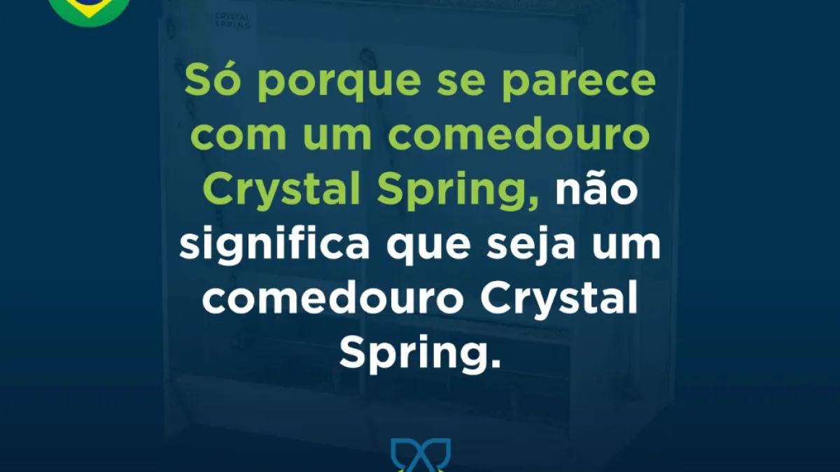 Enquanto muitos fabricantes anunciam seus comedouros como um “tipo Crystal Spring”, apenas o original é realmente um Crystal Spring. Crystal Spring investiu em pesquisa e inovação para criar produtos duráveis e com performance comprovada. Não se deixe enganar pelas cópias mal feitas e que não funcionam!