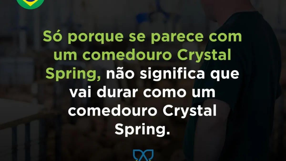 A fabricação, engenharia e design de precisão da Crystal Spring garantem que todos os nossos comedouros sejam da mais alta qualidade e os mais duradouros no mundo. Você não encontrará um comedouro cópia, em uma granja após 15 anos de uso, ainda oferecendo o mesmo desempenho. Apenas um comedouro Crystal Spring original ainda estará lá, firme e forte!