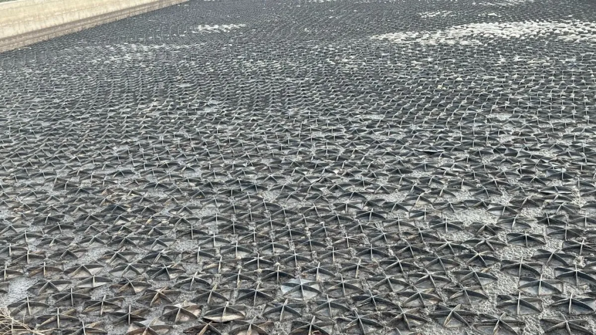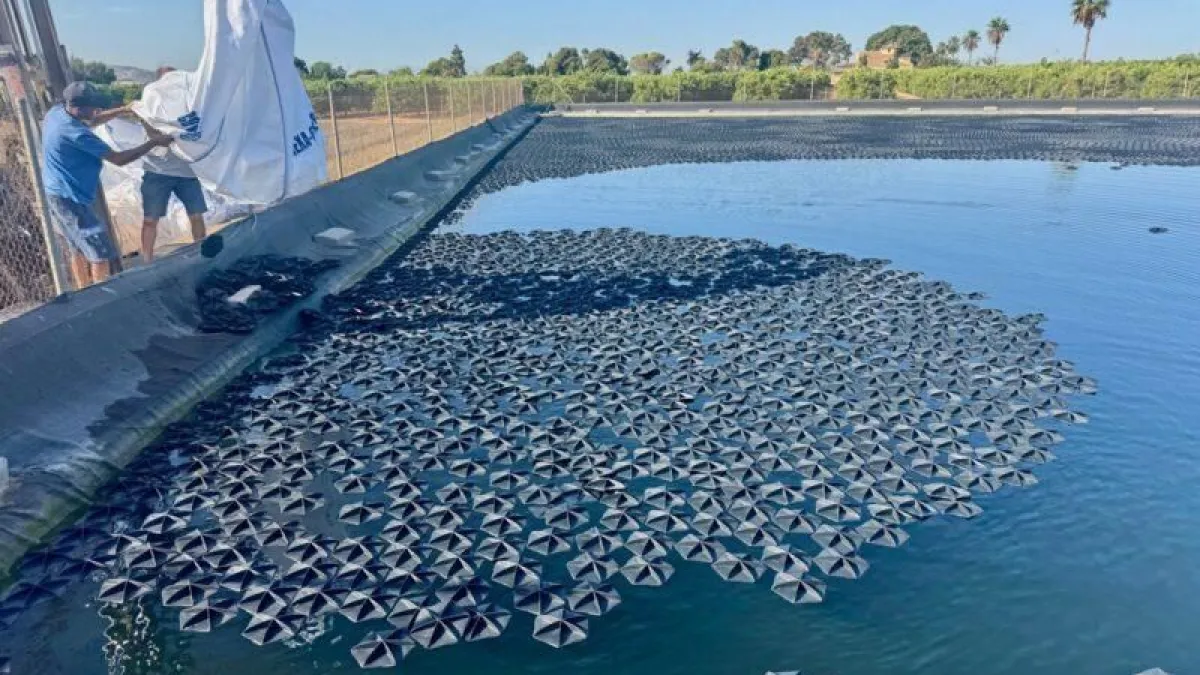 , una cubierta flotante formada por piezas hexagonales que bloquean la luz solar, impidiendo la formación de algas sin necesidad de utilizar alguicidas. Además, reduce la evaporación del agua y requiere poco mantenimiento. Está fabricada con polipropileno reciclado, tiene una vida útil de 25 años, es fácil de instalar y se adapta a cualquier forma de embalse o nivel de agua.