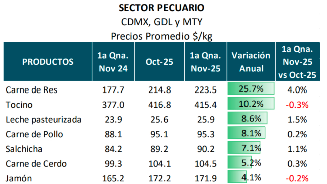La inflación sube a 3.61% en la primera quincena de noviembre, pero los alimentos bajan a 4.94%, marcando el primer alivio tras meses de presión.