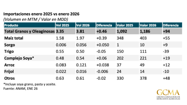 Las importaciones de granos y oleaginosas arrancaron 2026 al alza, impulsadas por maíz y sorgo, en un entorno de presión para productores nacionales y mayor competencia externa.