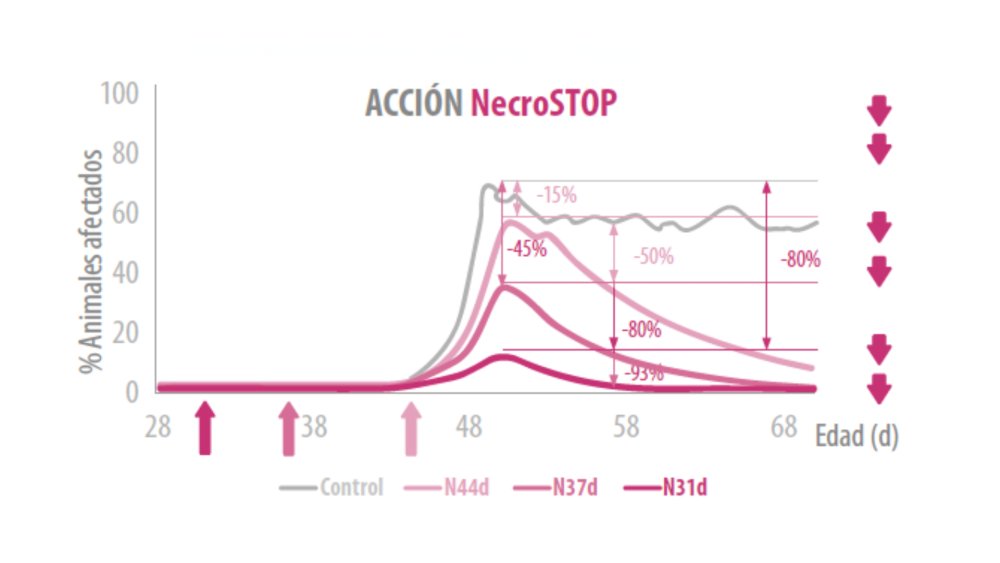 Grupo N44d: Pienso control con 1 kg/T de NecroSTOP desde el día 44 hasta el día 70 de vida.