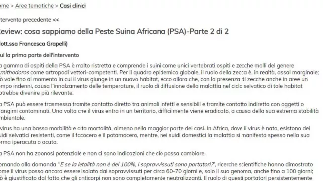 Review: cosa sappiamo della Peste Suina Africana-Parte 2
