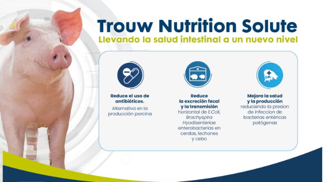 Trouw Nutrition Solute es parte del Programa de Salud Intestinal y Control de Disentería en porcino. Se centra en el control microbiano, disminuyendo el uso de antimicrobianos y me