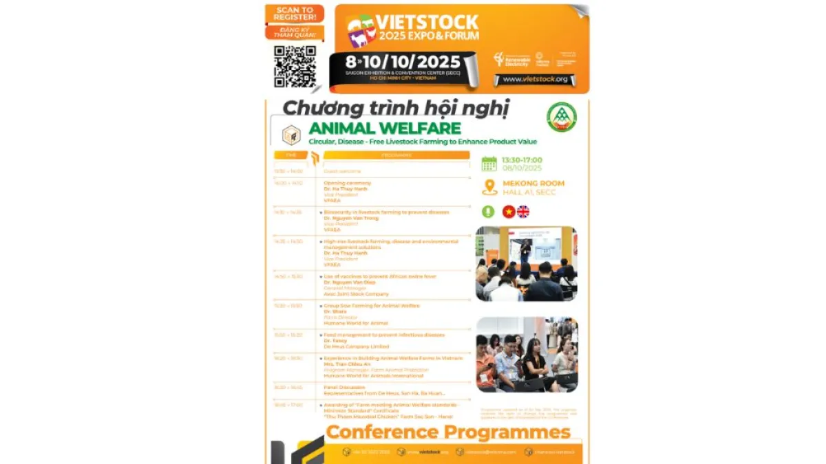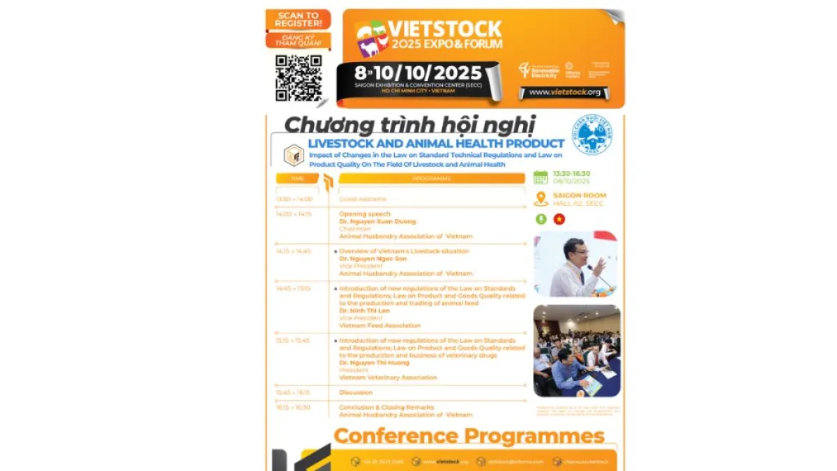 On October 08–09, within the framework of Vietstock 2025, the Department of Animal Health and Production (Ministry of Agriculture and Environment) will host 03 key conferences focusing on crucial topics: