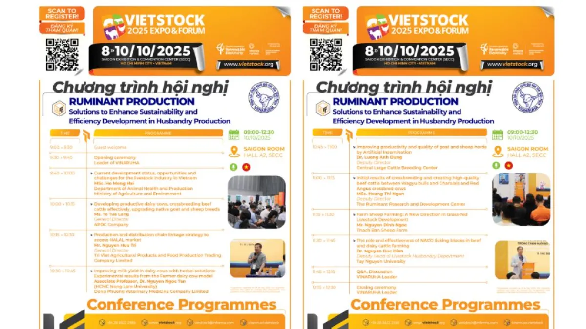 In collaboration with the Vietnam Ruminant Husbandry Association (VINARUHA) at 9 AM on October 10 at the Saigon Conference Room, Hall A2, Vietstock 2025 will present the Conference with the theme: