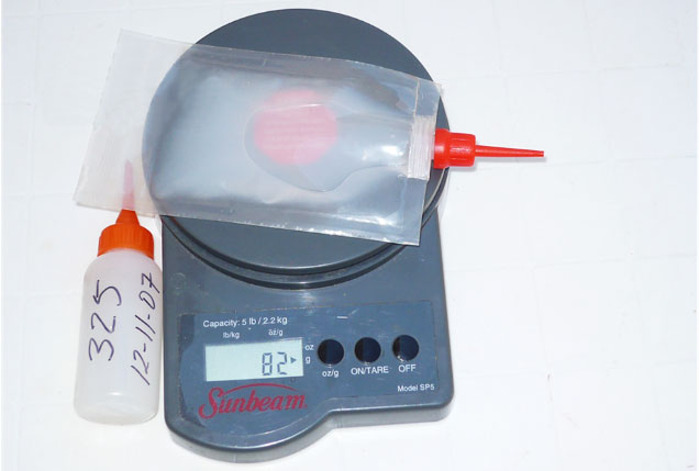 纠正的计算考虑到新的80毫升容器,故20个剂量所需的总体积为1,600毫升。将灌装体积设定为80ml,使用数字秤以称量剂量作为控制措施。减去容器重量后,剂量必须重80克(照片3)。