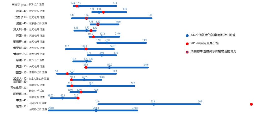 巴西和哥伦比亚的用户的预测也非常接近实际最高价格。阿根廷经济的波动导致价格远高于333用户的预期。全年价格上涨,达到75阿根廷比索/公斤(比2018的最高价格高出50%)。