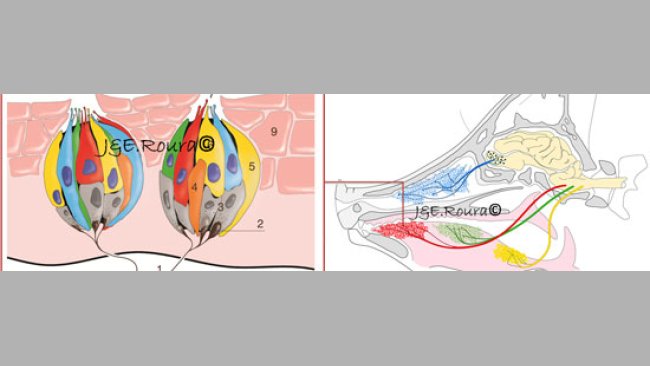 简言之,化学感觉系统通过监测口胃和肠内容物(主要是饮食来源)中的营养物质和潜在的有毒物质发挥作用。它使猪能区分环境中存在的营养源,并整合来自大脑的与营养状态(食欲)或其他感官(即气味、声音、视觉)相关的传入信号。碳水化合物、脂肪(能量)和氨基酸由口中引起可口感的味觉细胞和肠内与肠肽分泌有关的EEC感知(表1)。