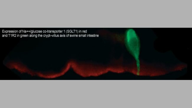 餐间和餐后的时间间隔主要由来自小肠和/或大肠的信号整合决定。营养传感器(包括味觉感受器)在EEC和其他肠上皮细胞中大量表达。这种营养传感器在EEC中与肠肽(如CCK、GLP-1或PYY)共同表达,并且与它们的释放有关,具有与食欲相关的旁分泌(局部)或内分泌(系统)功能。