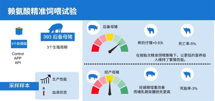 该中心的主要研究方向之一是妊娠期的精准饲喂,即根据每头母猪的实际需求调整其营养摄入。在这方面,一项针对393头后备母猪穿越三个繁殖周期的赖氨酸试验尤为突出,该试验比较了不同的营养策略。结果表明,在降低营养摄入的情况下仍可维持繁殖性能,甚至在特定处理组中实现了每头母猪多断奶0.6头仔猪,死亡率降低5%。在经产母猪中,还观察到妊娠期增重更佳,死产率降低3%;尽管哺乳期背膘损失程度更大,这凸显了在不同阶段间采取动态调整饲喂策略的必要性。
