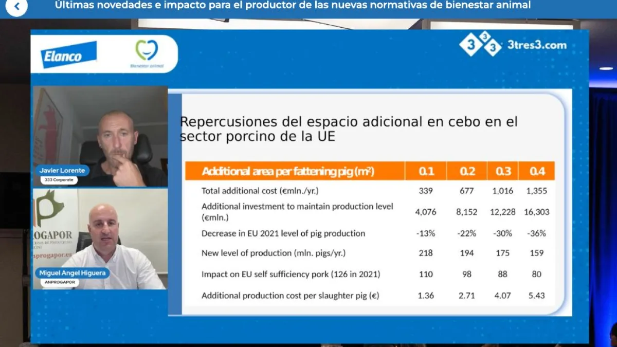 Las repercusiones en costes adicionales por cerdo de cebo pueden oscilar entre 1,36 y 5,43€ (o incluso más!), si se llegan a aprobar las nuevas normativas de bienestar animal que se están debatiendo actualmente a nivel EU. Revive el conversatorio sobre el tema en la plataforma de eventos de 333 entrando en este enlace: