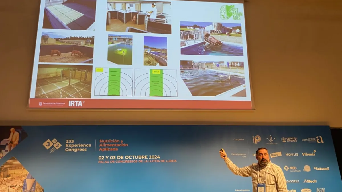 Learning from the experts at the 333 Experience "Nutrition and Applied feeding" (Lleida, Spain. Oct'24). Researcher at IRTA, Antoni Dalmau, sharing their projects about gut brain axis