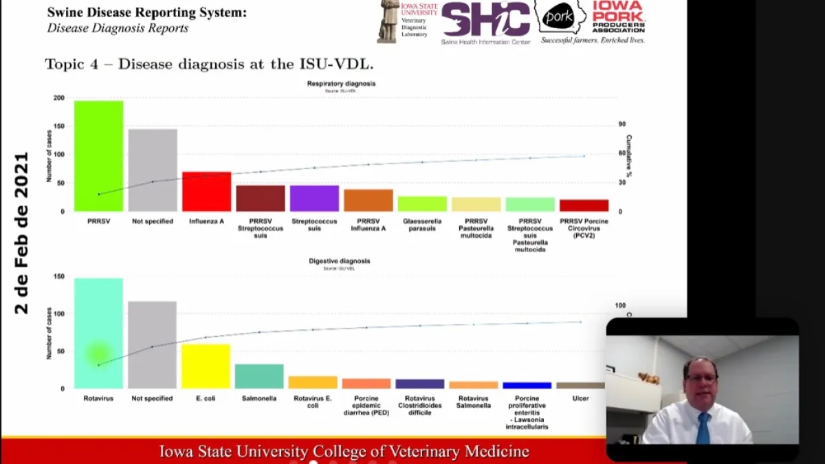 PRRS is the most diagnosed disease at the ISU-VDL, according to Dr Alex Ramirez, shared during the e-diagnostics tool launch event hold Feb 10th 2021