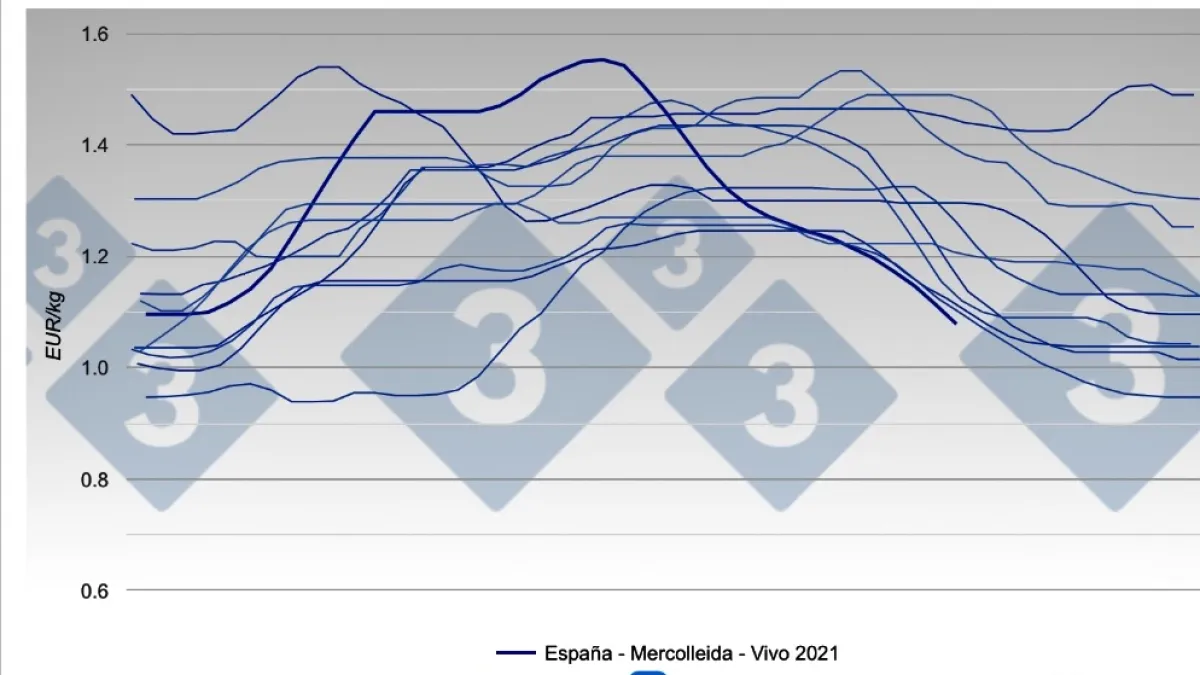 Nueva caída de la cotización de Mercolleida (-0,035€/Kg, valor actual de 1,079€/Kg), que supone la cotización más baja de los últimos 10 años en este momento del año (!)