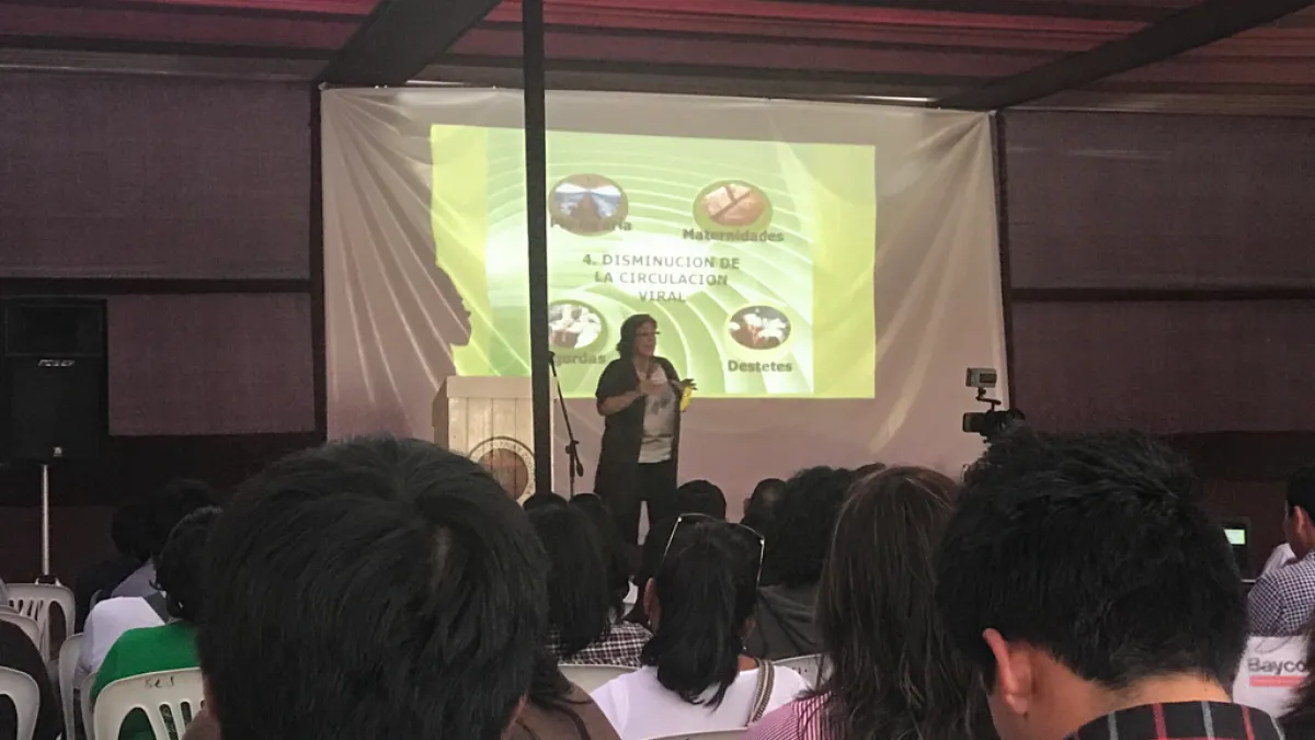 La Dra. Laura Batista exponiendo en el VIII Seminario Internacional de Producción Porcina. Chincha. Perú.