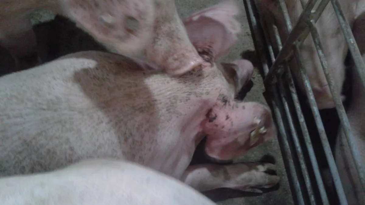 Sapete di cosa si tratta? sono lesioni bilaterali in un gruppo di scrofette, circa 30% di animali colpiti. Non cè cannibalismo e non si grattano....