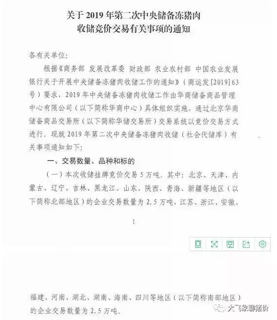 关于收储数量:本次收储挂牌交易数量为5万吨;其中,北京,天津,内蒙古,辽宁,吉林,黑龙江,山东,陕西,青海,西藏(以下为北部地区)交易量为2.5万吨;江苏,浙江,安徽,福建,河南,湖北,湖南,海南四川等地区为南部地区,交易量为2.5万吨。