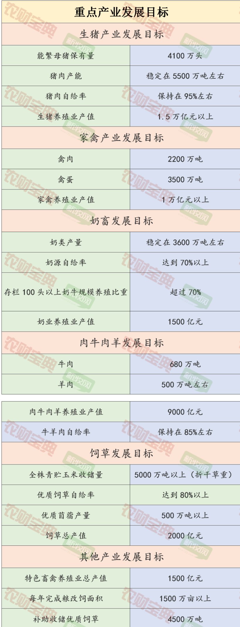 重点产业发展规划中表示,优化区域布局与产品结构,重点打造生猪、家禽两个万亿级产业,奶畜、肉牛肉羊、特色畜禽、饲草四个千亿级产业,着力构建“2+4”现代畜牧业产业体系。