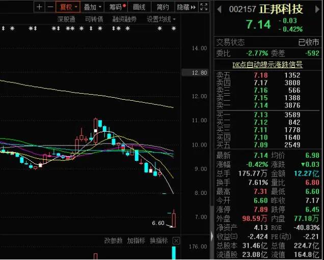 业绩亏损太严重,正邦科技也只敢在最后一天发布公告。但是在躲了一个春节假期后,公司还是没能躲过跌停的惨剧,虎年直接吃了两个跌停。2月9日,虽然没有再度跌停,但股价也没能实现翻红,收报7.14元/股,跌幅0.42%,盘中一度触及近两年多的新低。