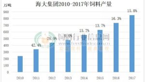 2017年海大饲料销量达到849万吨,比2016年的733万吨增长15.8%。