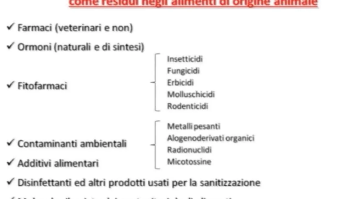 molecole che possono riscontrarsi come residui negli alimenti di origine animale...