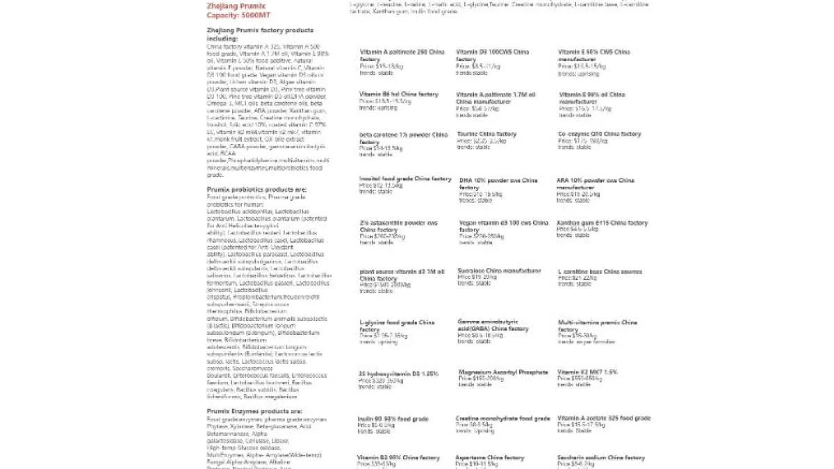 Prumix vitamins China,Prumix amino acids China,Prumix plant extract, Prumix food additives from China 2023-12-04