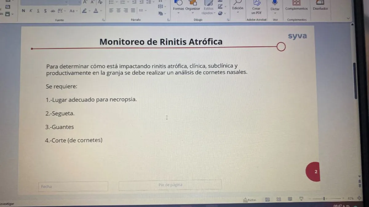 Monitoreo de Rinitis Atrófica para determinar como está impactando en las granjas
