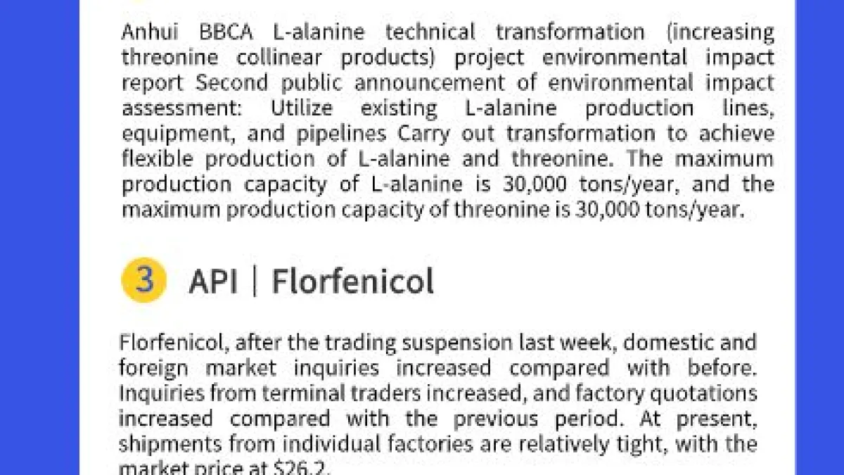VEGA GROUP will update the domestic and foreign market information on vitamins, amino acids, food additives, and APIs every day. Click and follow the company homepage to know real-time marke