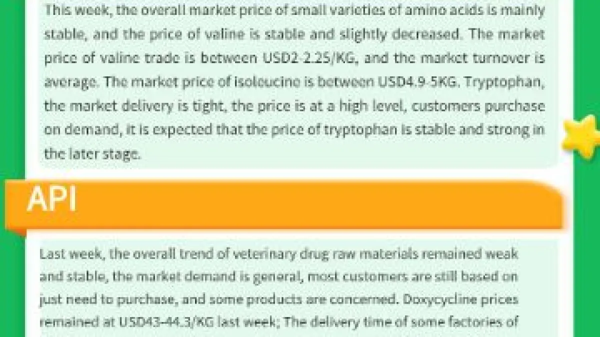 VEGA GROUP will update the domestic and foreign market information on vitamins, amino acids, food additives, and APIs every day. Click and follow the company homepage to know real-time marke