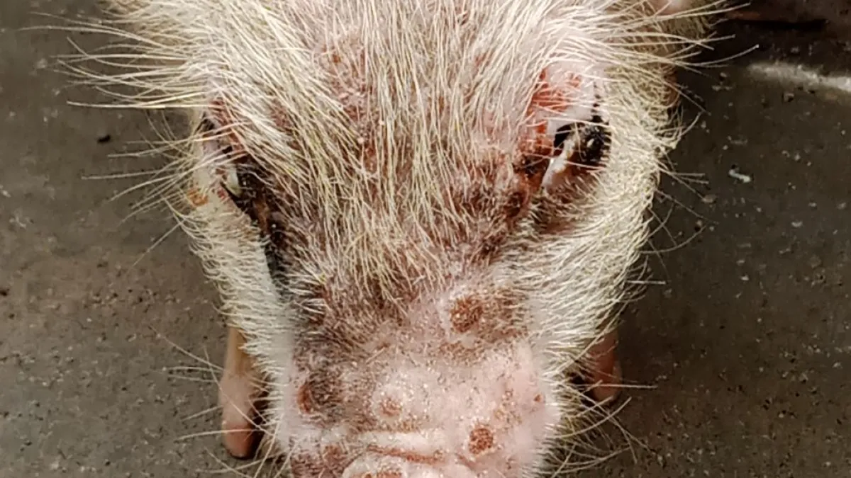 J'ai au sein de ma Porcherie quelques porcelets qui présentent des lésions cutanées et des yeux qui collent au réveil. Quelle est le nom et la cause de cette maladie et comment puis-je la traiter ?